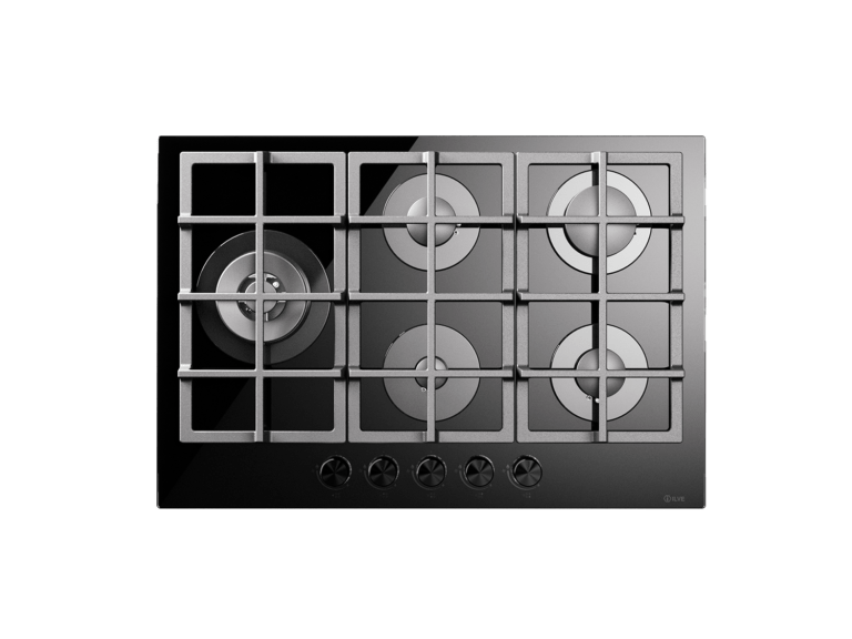 Professional Plus gashäll 75 med 5 brännare. Svart härdat glas och mattsvart vred.