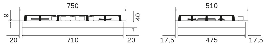 • Dubbelrings-/wokbrännare Ø 120 mm; 4  – 1,8kW