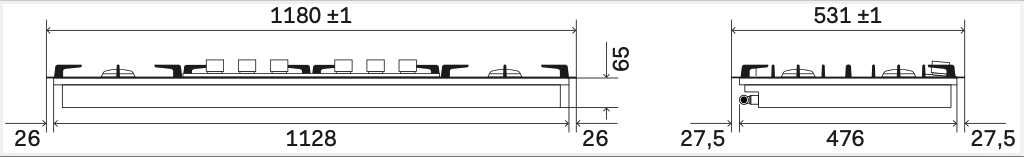 Inbyggnads/hålmått120-häll: 1140x490mm