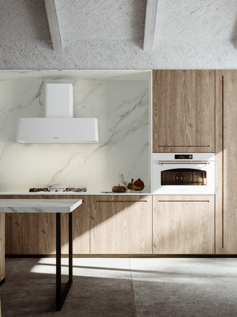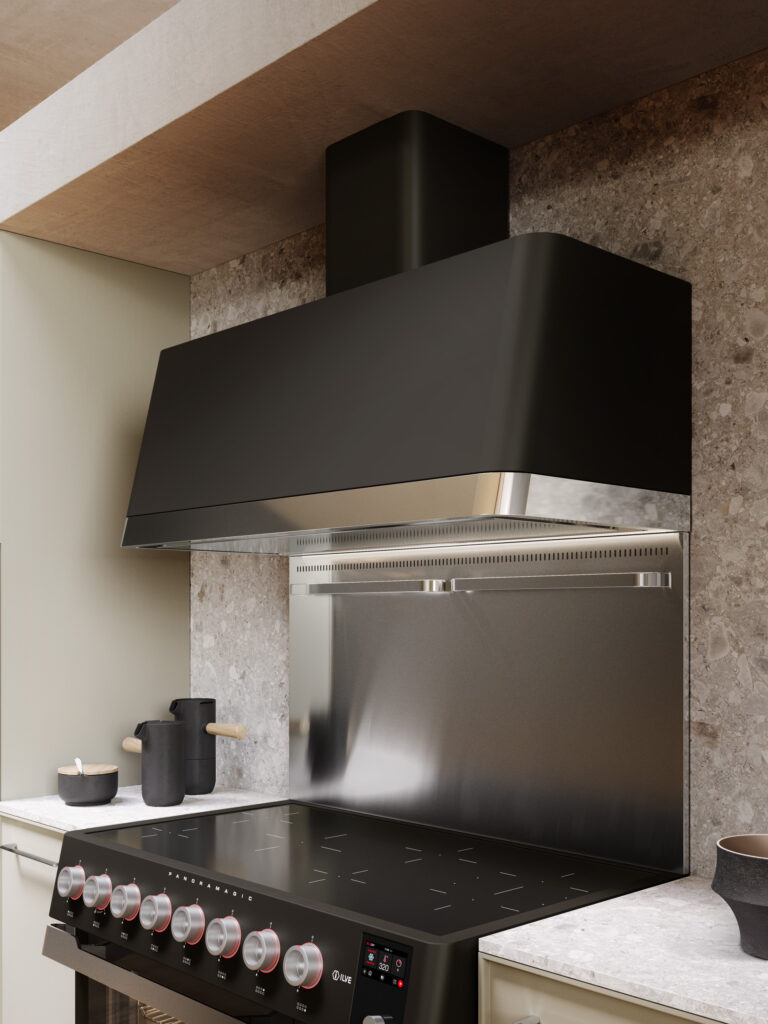 ILVEs utbud av vägghängda köksfläktar passar din ILVE spis eller häll i både funktion och estetik. En vägghängd köksfläkt låter blicken vandra uppåt och kompletterar din spis eller häll fint.
