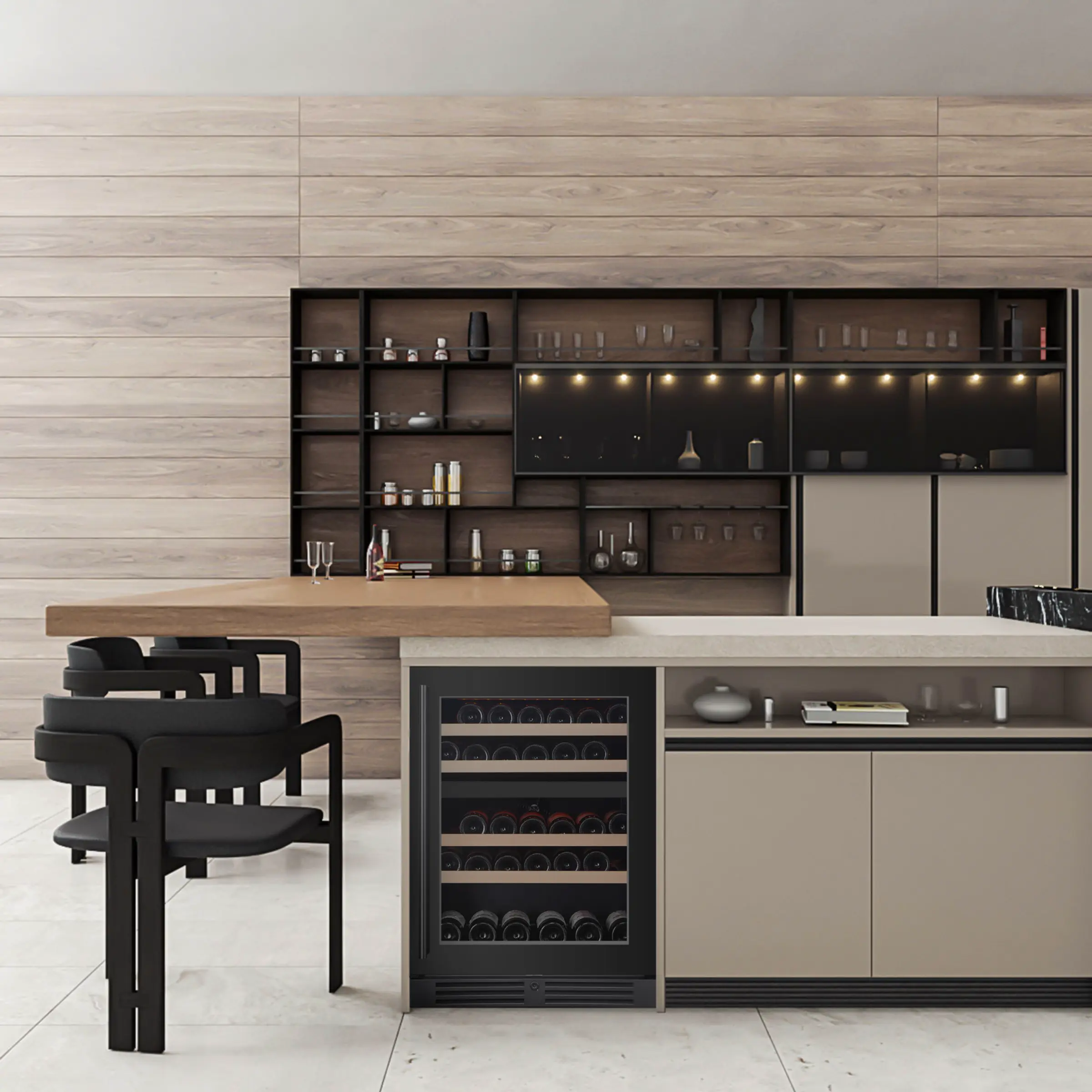 Kännetecken för Vignerons serie av vinkylar för inbyggnad under bänk: