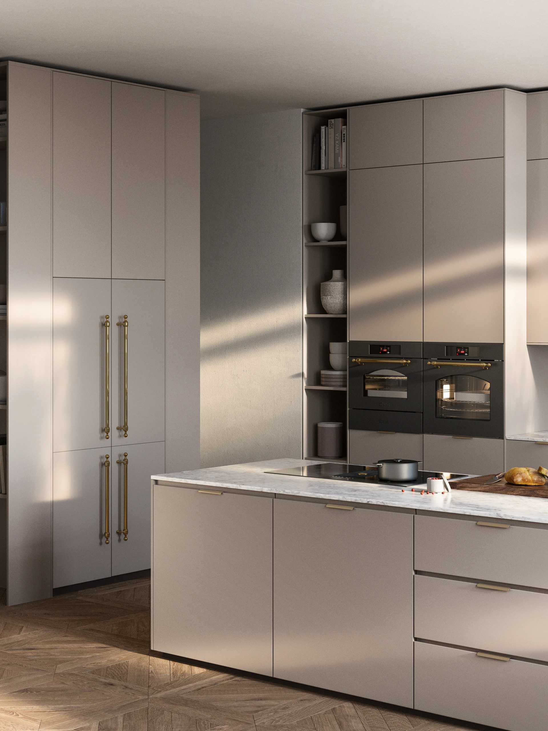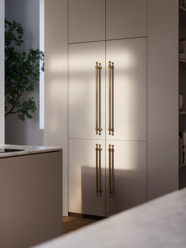 Nu kan vi även erbjuda ett 4-dörrars french door kyl och frys för integrering med egen lucka där du också kan välja till de olika Nostalgie och Professional Plus handtagen. Ett integrerat kylskåp med franska dörrar skapar en fin enhetlighet i ditt kök där kylskåpet smälter in bland övriga kökssnickerier. Komplettera ditt integrerade kylskåp med ILVEs vackra Nostalgie handtag i fyra olika färger eller det raka, moderna Professional Plus handtaget i rostfritt eller matt svart för att komplettera med din ILVE spis.