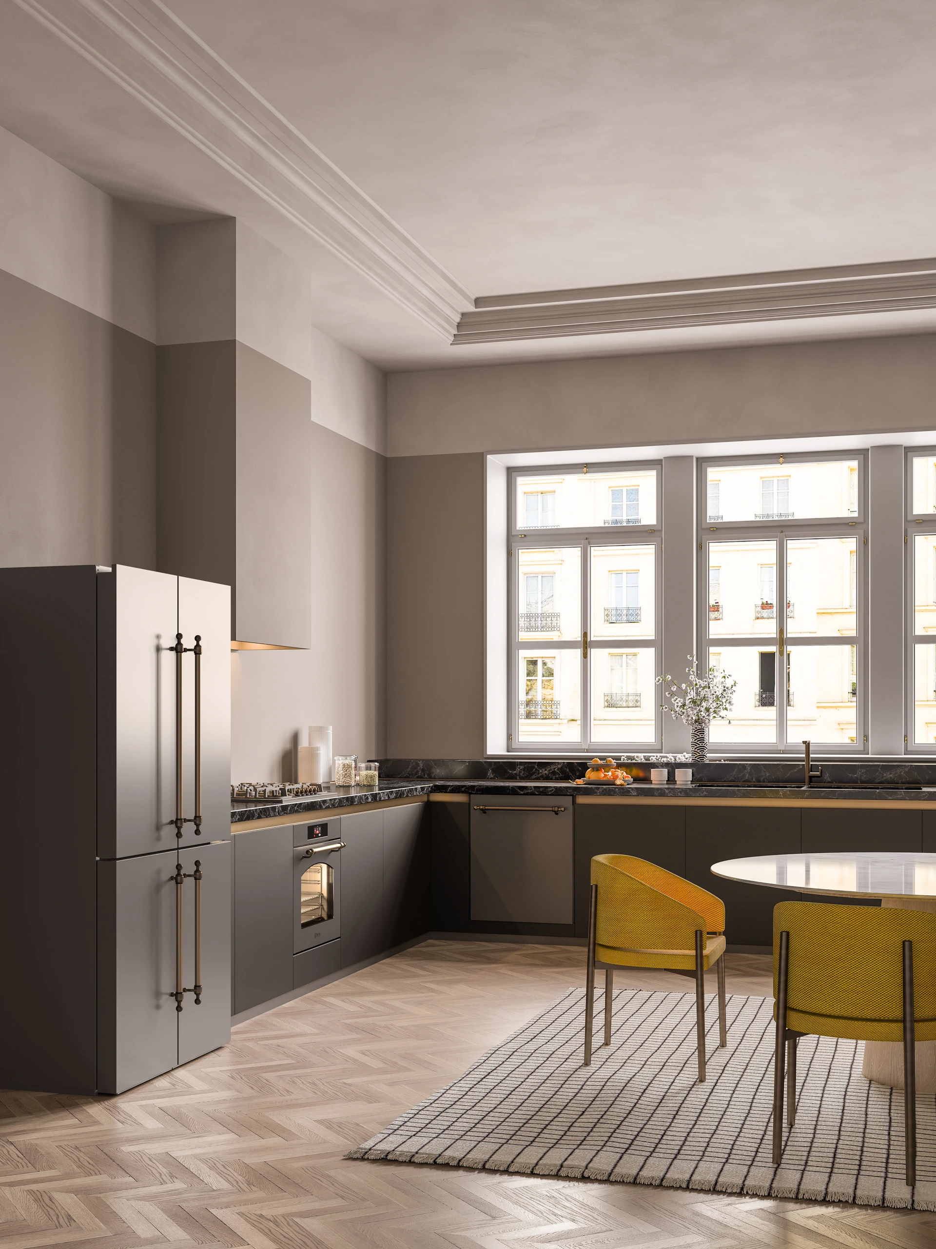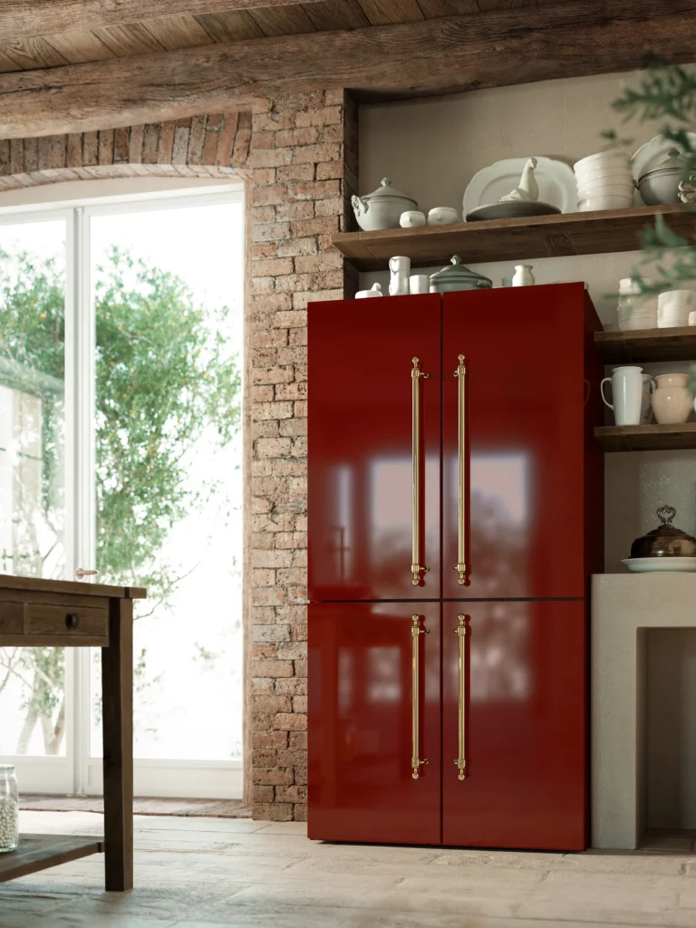 4-dörrars french door kyl och frys i ILVEs alla 9 olika standardfärger och med möjlighet att specialbeställa en egen, unik färg i RAL-skalan. Välj mellan det vackra klassiska Nostalgie-handtaget i mässing, krom, brons eller koppar för att skapa en helhet med din Nostalgie eller Majestic spis. Professional Plus-handtaget i rostfritt eller matt svart passar bättre för dig som uppskattar det mer raka och moderna utseendet.