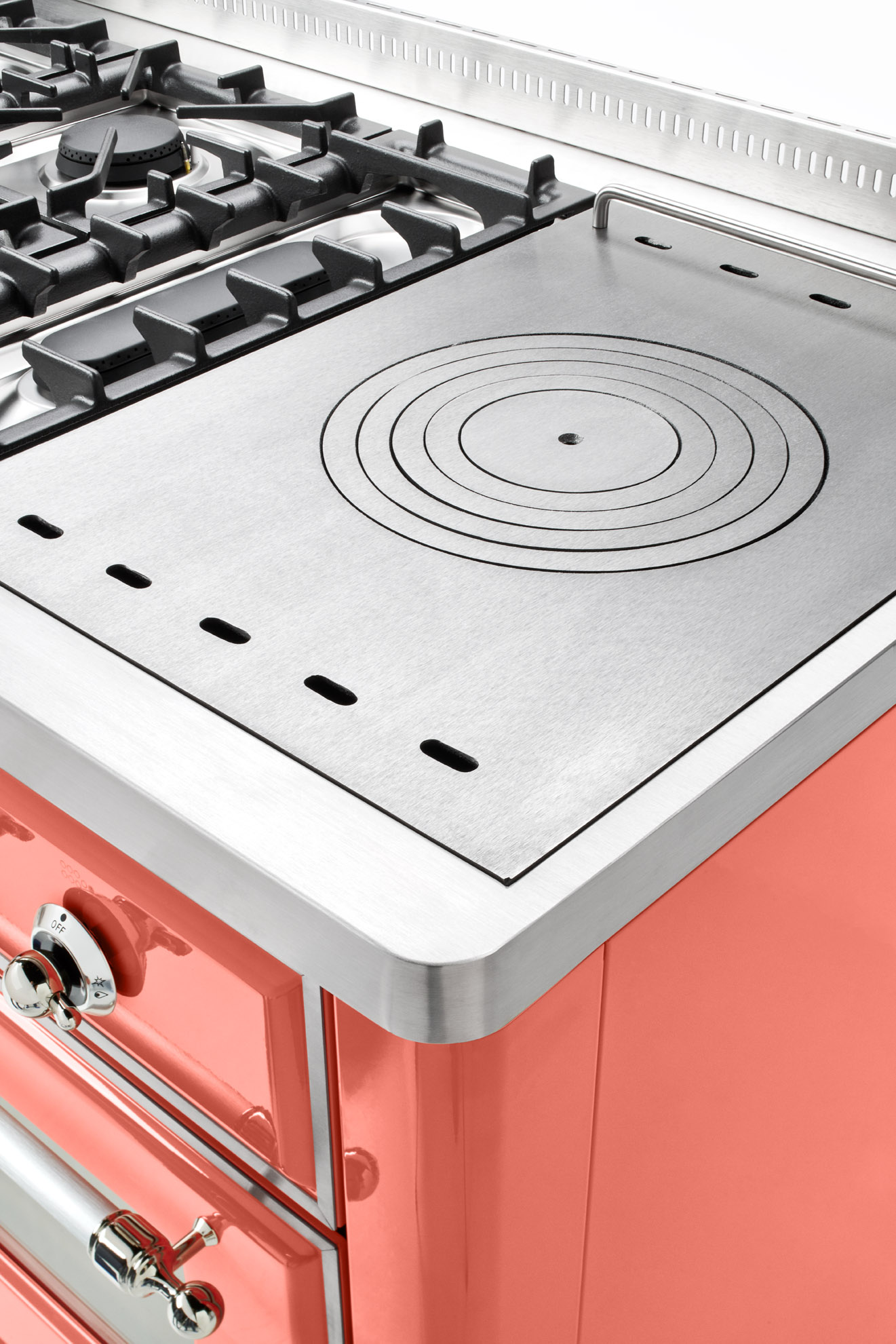 En stor del av Majestic-seriens uttryck sitter i de klassiska beslagen som ger spisen dess tidlösa och hantverksinspirerade karaktär. Vreden och handtagen är formgivna för att påminna om traditionella kök, samtidigt som de erbjuder ett gediget grepp och hög funktionalitet i vardagen.